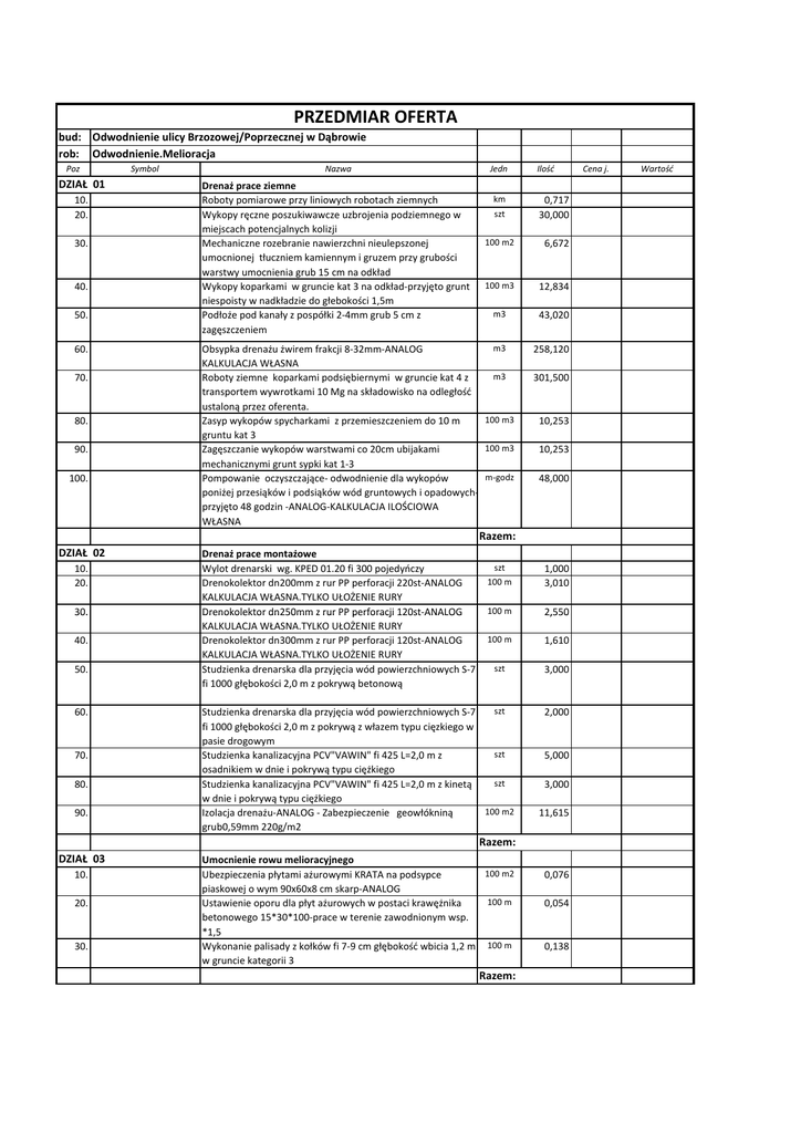 Przedmiar oferta Dąbrowa2