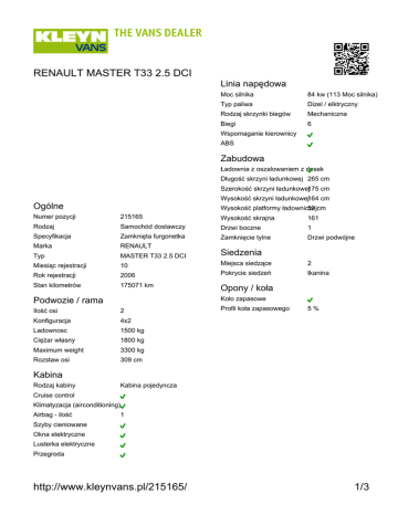http://www.kleynvans.pl/215165/ 1/3 RENAULT MASTER T33 2.5 DCI