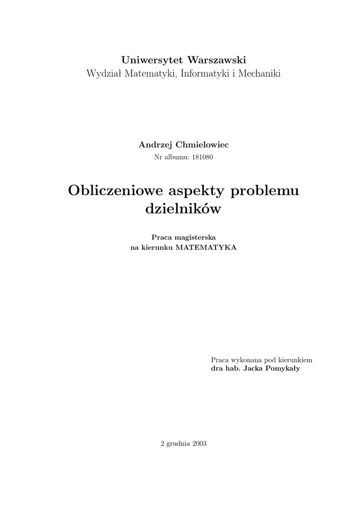 Obliczeniowe aspekty problemu dzielników