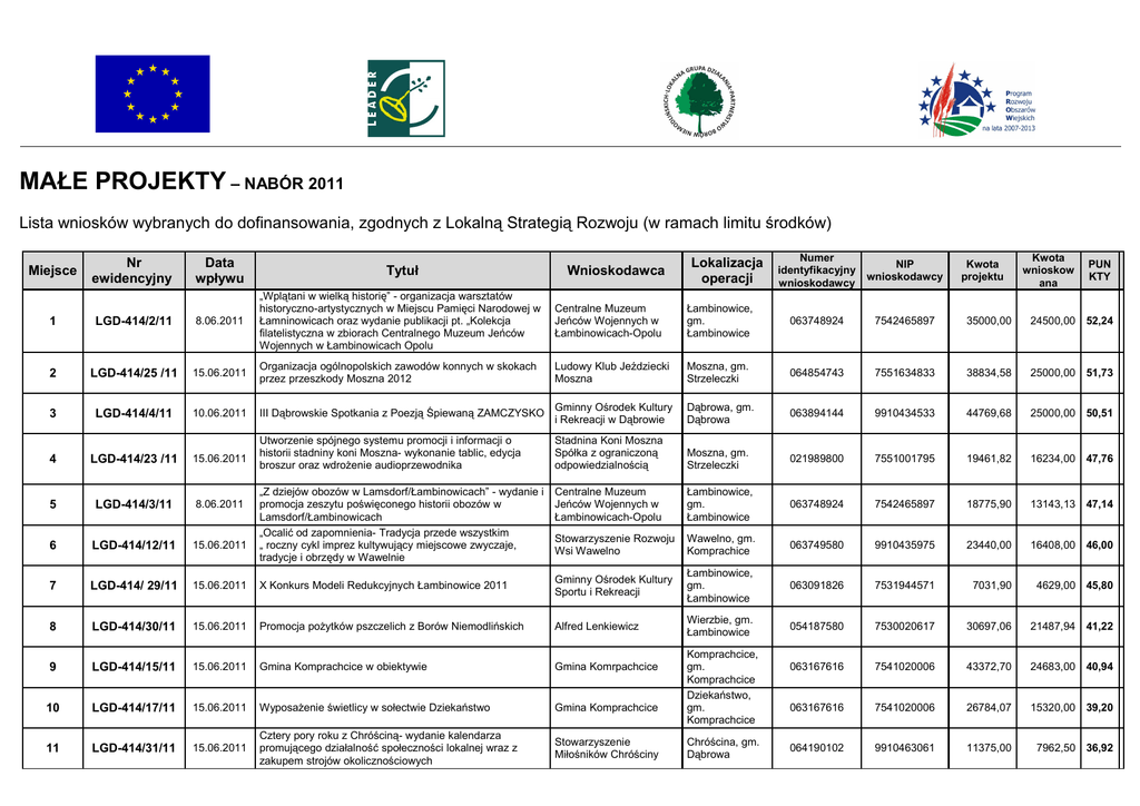 Lista rankingowa Małe projekty 2011
