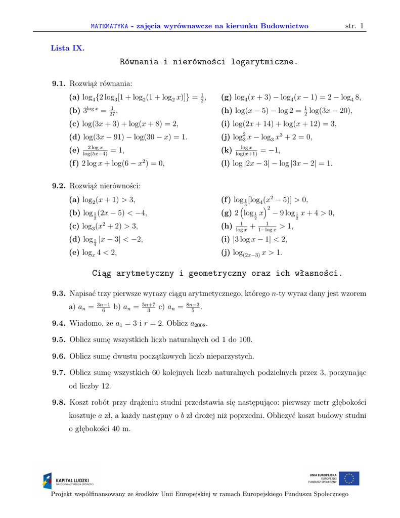 Równania i nierówności logarytmiczne. Ciąg arytmetyczny i