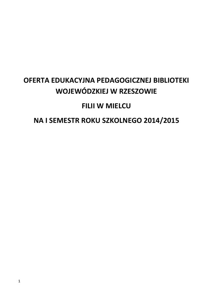oferta edukacyjna pedagogicznej biblioteki
