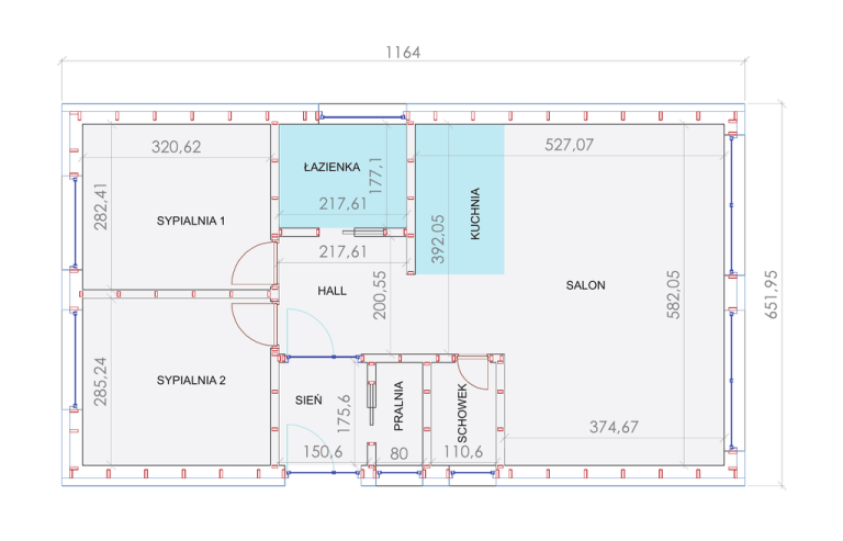 KUCHNIA ŁAZIENKA SYPIALNIA 1 SALON SIEŃ SCHOWEK SYPIALNIA 2 PRALNIA HALL