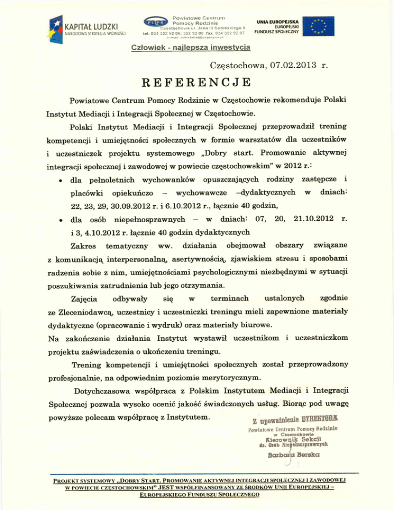 REFERENCJE - Polski Instytut Mediacji i Integracji Społecznej