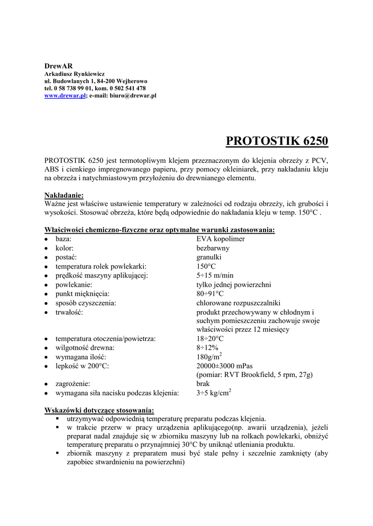 protostik 6250 - DREWAR Arkadiusz Rynkiewicz