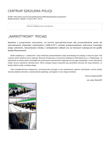 CENTRUM SZKOLENIA POLICJI „NARKOTYKOWY” POCIĄG