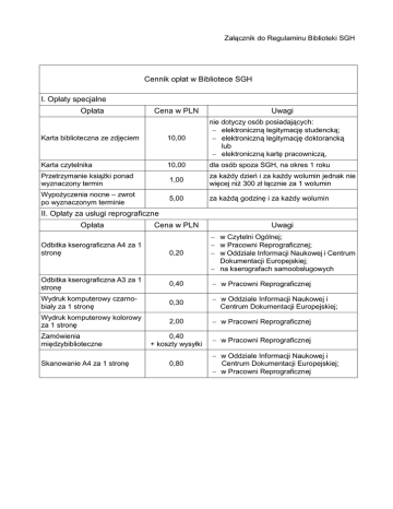 Cennik opłat w Bibliotece SGH I. Opłaty specjalne Opłata Cena w