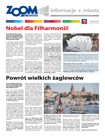 nr 4/maj 2015 Wydawca©UM Szczecin pl. Armii Krajowej 1 tel. 91 424 56 00 e-mail: [email protected] Aktualności_co słychać? Ecozmiany Mieszkania Wydarzenia_co się dzieje? Nobel dla Filharmonii! Szczecińska Filharmonia laureatem Europejskiej Nagrody Architektonicznej im. Miesa ven der Rohe, architektonicznego Nobla. W Barcelonie nagrodę odebrał (wraz z architektami Alberto Veiga i Fabrizio Barozzi) Piotr Krzystek, prezydent Szczecina. – To historyczna chwila i wielkie wyróżnienie dla Szczecina i dla Polski Gdy decydowaliśmy się na ten projekt, wiedzieliśmy, że będzie niepowtarzalny. Jesteśmy dumni i szczęśliwi. Dziękuję wszystkim, którym zawdzięczamy ten sukces. Zapraszam do Szczecina. Przyjechaliśmy do fantastycznej Barcelony przekonani, że sama nominacja to i tak wielki sukces – dodaje Dorota Serwa, dyrektor Filharmonii im. M. Karłowicza. – Pierwszym sygnałem zwycięstwa była krótka charakterystyka kryteriów, jakimi kierowali się jurorzy. Już wtedy poczuliśmy, że Filharmonia doskonale się w nie wpisuje – dodała Serwa. A po ogłoszeniu werdyktu jury… Był dziki krzyk, piski, zachowywaliśmy się jak dzieci – mówi Ewa Porębska, naczelna magazynu „Architektura Murator”, która też była w Barcelonie. Europejska nagroda jest potwierdzeniem klasy filharmonii. Architektura w Polsce nigdy jeszcze nie zaszła tak daleko. Potwierdza to również Krzysztof Ingarden, wybitny polski architekt, który w komentarzu dla portalu Onet podkreślił: To pierwsza taka nagroda, która dotyczy architektury zlokalizowanej w Polsce. Nagroda Miesa van der Rohe potwierdza, że jakość tego, co obecnie robi się w Polsce, jest coraz wyższa i warto inwestować w odważne projekty. Architektoniczny Nobel przyznawany jest przez Komisję Europejską, Parlament Europejski i Fundację Miesa van der Rohe z Barcelony. W tym roku konkurowało 420 projektów z 36 europejskich krajów. Do ścisłego finału dostało się 5 obiektów: Muzeum Sztuki z Ravensburga, (Niemcy); Muzeum Morskie w Helsingor (Dania); Winnica Antinori w San Casciano Val di Pesa (Włochy); Saw Swee Hock Student Centre LSE w Londynie (Wielka Brytania) i szczecińska Filharmonia. Mimo młodego wieku, szczecińska Filharmonia może się już pochwalić wieloma nagrodami. Otrzymała Grand Prix – Nagrodę Prezydenta Rzeczypospolitej Polskiej dla Najlepszego Obiektu Architektury w Polsce w latach 2013-2014 konkursu „Życie w architekturze” Budynek otrzymał też pierwszą nagrodę w konkursie architektonicznym Eurobuild Awards 2014 w kategorii Architectural Design of the Year. W konkursie Polska Architektura XXL organizowanym przez Grupę Sztuka Architektury skupiającym wortale tematyczne skierowane do architektów, głosami fachowców oraz internautów gmach Filharmonii uznany został za najlepszy obiekt użyteczności publicznej. A słuchacze RMF Classic w głosowaniu przyznali nagrodę MocArty Rzecz z Klasą. Filharmonię Szczecińską zaprojektowała barcelońska pracownia architektoniczna Estudio Barozzi Veiga. Zaproponowana przez nich surowa, strzelista forma budynku zwyciężyła w międzynarodowym konkursie architektonicznym, pokonując blisko 40 innych projektów. To nowoczesny, pięciokondygnacyjny gmach z salą symfoniczną – Złotą – na 951 osób i mniejszą – Księżycową, z 192 miejscami. Nagroda imienia Miesa van der Rohe – wybitnego architekta moderniczmu przyznawana jest od 1987 roku, co dwa lata, za realizację ukończoną w ciągu dwóch poprzednich lat. Nominacje zgłaszają eksperci z Europy, krajowe stowarzyszenia architektów zrzeszone w ramach Rady Architektów Europy oraz komitet doradczy nagrody. W poprzednich latach laureatami byli, m.in. Opera w Oslo, Neuses Muzeum w Berlinie, Francuska Biblioteka Narodowa w Paryżu, Waterloo Station w Londynie. Powrót wielkich żaglowców Szczecin będzie gospodarzem finału międzynarodowych regat The Baltic Tall Ships Regatta 2015. Od 12 do 15 czerwca będziemy gościć w Szczecinie bez mała 50 żaglowców i jachtów. Większość z nich rywalizować będzie na trasie z Kłajpedy do Szczecina. Do przepłynięcia jest około 340 mil morskich. Start 5-8 czerwca w Kłajpedzie, meta i finał regat 12-15.06. w Szczecinie. W regatach uczestniczyć będą jednostki z Polski, Niemiec, Rosji, Szwecji, Litwy, Łotwy, Finlandii, Holandii i Wielkiej Brytanii. Do Szczecina przypłynie największy szkolny żaglowiec świata, zbudowany w 1921 roku, rosyjski „Sedov”. Przepiękny czteromasztowy bark wielokrotnie gościł w Szczecinie i zawsze wzbudzał ogromne zainteresowanie – tak dzieje się w każdym porcie, w którym pojawi się ten niezwykły żaglowiec. W klasie A, największych jednostek, ścigać się będzie „Dar Młodzieży”. Do regatowych zmagań w swoich kategoriach staną także między innymi: „Zawisza Czarny”, „Generał Zaruski”, „Shtandart”, „Mercedes”. Regaty są doskonałą okazją nie tylko do pokazania piękna żeglarstwa, ale także do promocji naszego miasta i regionu, dlatego szczecińskich akcentów z pewnością nie zabraknie. W imprezie, oprócz wymienionych wcześniej jednostek, wezmą udział także „Dar Szczecina”, „Zryw” – jachty, których portem macierzystym jest Szczecin. Warto przypomnieć, że dumnie prezentujący herb naszego miasta na żaglach „Dar Szczecina” został zbudowany w szczecińskiej stoczni im. Leonida Teligi, losy tej jednostki są więc bardzo mocno związane z historią szczecińskiego żeglarstwa. Obok zmagań regatowych zaplanowano wiele imprez towarzyszących zarówno dla załóg, które przybędą do naszego miasta, jak i dla wszystkich, którzy przyjdą na nadodrzańskie bulwary, podziwiać piękne żaglowce. Będzie więc jubileuszowy, X Zlot Oldtimerów i barwna parada załóg, która przejdzie z Wałów Chrobrego do Placu Grunwaldzkiego i z powrotem wróci na Wały Chrobrego. W piątek 12 czerwca i w sobotę 13 czerwca zaplanowano dwa duże k