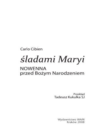 Tytuł oryginału SULLE ORME DI MARIA Novenna di Natale © EDIZIONI SAN PAOLO s.r.l., 2007 Piazza Soncino, 5 - 20092 Cinisello Balsamo (Milano) © Wydawnictwo WAM, 2008 Redakcja Jadwiga Świątek Projekt okładki i stron tytułowych Andrzej Sochacki ISBN 978-83-7505-194-6 NIHIL OBSTAT. Prowincja Polski Południowej Towarzystwa Jezusowego, ks. Krzysztof Dyrek SJ, prowincjał. Kraków, 4 lipca 2008 r., l.dz. 170/08. WYDAWNICTWO WAM ul. Kopernika 26 • 31-501 Kraków tel. 012 62 93 200 • faks 012 429 50 03 e-mail: [email protected] DZIAŁ HANDLOWY tel. 012 62 93 254-256 • faks 012 430 32 10 e-mail: [email protected] Zapraszamy do naszej KSIĘGARNI INTERNETOWEJ http://WydawnictwoWAM.pl tel. 012 62 93 260 • faks 012 62 93 261 Drukarnia Wydawnictwa WAM ul. Kopernika 26 • 31-501 Kraków wydawnictwowam.pl Spis treści Wprowadzenie 16 grudnia Piękno Maryi sprawia, że Bóg zakochuje się w swoim stworzeniu .............. 15 17 grudnia Maryja jest niewiastą, która słucha i miłuje .......................................................... 25 18 grudnia Maryja zachowuje w sercu to, co przeżywa .................................................. 35 19 grudnia Maryja jest „Służebnicą Pańską” ................. 43 20 grudnia Maryja, ochrzczona w Duchu Świętym, jest Matką Chrystusa .................................... 51 21 grudnia Maryja, pokorna niewiasta, jest Bożym pocałunkiem dla ludzkości ........ 59 93 ŚLADAMI MARYI 22 grudnia Maryja jest matką każdego chrześcijanina i matką Kościoła ................... 67 23 grudnia Maryja jest znakiem Boga działającego dzisiaj ....................................... 75 24 grudnia Maryja jest znakiem nadziei „na przyszłość” ............................................. 85 94 Wprowadzenie Dlaczego przed uroczystością Bożego Narodzenia mamy odprawiać nowennę, której główną postacią jest Maryja? Aby odpowiedzieć na to pytanie, wystarczy przeczytać niektóre fragmenty adhortacji apostolskiej Marialis cultus Pawła VI, która została opublikowana 2 lutego 1974. Adhortacja ta pomaga nam uchwycić i zrozumieć maryjny sens Adwentu. Zwróćmy uwagę na dwa fragmenty, które odnoszą się bezpośrednio do Adwentu: Dlatego w liturgii świętej okresu Adwentu – oprócz tego, że w uroczystość z dnia 8 grudnia, przez którą czci się równocześnie Niepokalane Poczęcie Bożej Rodzicielki Dziewicy, zasadnicze przygotowanie (por. Iz 11, 1; Konstytucja o Liturgii Świętej, 102) na przyjście Zbawiciela i szczęśliwe zapoczątkowanie Kościoła bez skazy lub zmarszczki (por. Prefacja na uroczystość Niepokalanego Poczęcia NMP) – często wspomina się Najświętszą Dziewicę, zwłaszcza w dni powszednie od 17 5 ŚLADAMI MARYI do 24 grudnia, a w szczególny sposób w niedzielę poprzedzającą Narodzenie Pańskie, w którą rozbrzmiewają dawne przepowiednie proroków o Dziewicy-Matce i Mesjaszu1. (Por. czytania na IV Niedzielę Adwentu: I czytanie w Roku A: Iz 7, 10-14: Oto Panna pocznie i porodzi Syna2; I czytanie w Roku B: 2 Sm 7, 1-5. 8b-11. 16: Przede Mną dom twój i twoje królestwo będzie trwać na wieki. Twój tron będzie utwierdzony na wieki; I czytanie w Roku C: Mi 5, 1-4a: Z ciebie wyjdzie dla mnie Ten, który będzie władał w Izraelu. Teksty ewangeliczne mówiące o bliskim narodzeniu Chrystusa i Jego Poprzednika: Ewangelia w Roku A: Mt 1, 18-24: Po zaślubinach Matki Jego, Maryi, z Józefem, wpierw nim zamieszkali razem, znalazła się brzemienną za sprawą Ducha Świętego; Ewangelia w Roku B: Łk 1, 26-38: Oto poczniesz i porodzisz Syna, któremu nadasz imię Jezus; Ewangelia w Roku C: Łk 1, 39-45: A skądże mi to, że Matka mojego Pana przychodzi do mnie?). 1 Paweł VI, Adhortacja apostolska Marialis cultus, nr 3. 2 Wszystkie cytaty biblijne pochodzą z: Pismo Święte Starego i Nowego Testamentu, Biblia Tysiąclecia, wyd. 5, Pallottinum, Poznań 2000. 6 16 grudnia Piękno Maryi sprawia, że Bóg zakochuje się w swoim stworzeniu Pieśń na wejście: Była śliczna i piękna jak wiosna (lub inna pieśń maryjna) POZDROWIENIE CELEBRANSA: Rozpocznijmy naszą nowennę przed uroczystością Bożego Narodzenia w imię Ojca i Syna i Ducha Świętego. Amen. Miłość Boga Ojca, łaska naszego Pana Jezusa Chrystusa i dar jedności w Duchu Świętym niech będą z wami. I z duchem twoim. KRÓTKIE WPROWADZENIE W TEMAT DNIA: W pewnym momencie historii Bóg osobiście wkroczył w życie ludzi. Posłał swojego Syna, aby w zrozumiały sposób powiedzieć ludziom, że ich bezgranicznie kocha. 15 ŚLADAMI MARYI Aby wypełnić swój plan, poprosił o współpracę niewiastę: Maryję. Kiedy Bóg wybiera, kocha do końca i obdarza ukochaną osobę swoją uświęcającą obecnością do tego stopnia, że się w niej zakochuje. Tego właśnie doświadczyła Maryja, która stała się „pełna łaski”. To doświadczenie dotyka także każdego z nas. CZYTANIE: EZ 16, 8-14 Czytanie z Księgi Proroka Ezechiela Oto przechodziłem obok ciebie i ujrzałem cię. Był to twój czas, czas miłości. Rozciągnąłem połę płaszcza mego nad tobą i zakryłem twoją nagość. Związałem się z tobą przysięgą i wszedłem z tobą w przymierze – wyrocznia Pana Boga – stałaś się moją. Obmyłem cię wodą, otarłem z ciebie krew i namaściłem olejkiem. Następnie przyodziałem cię wyszywaną szatą, obułem cię w trzewiki z miękkiej skórki, opasałem bisiorem i okryłem cię jedwabiem. Ozdobiłem cię klejnotami, włożyłem bransolety na twoje ręce i naszyjnik na twoją szyję. Włożyłem też pierścień w twój nos, kolczyki w twoje uszy i wspaniały diadem na twoją głowę. Zosta16 16 GRUDNIA łaś ozdobiona złotem i srebrem, przyodziana w bisior oraz w szaty jedwabne i wyszywane. Jadałaś najczystszą mąkę, miód i oliwę. Stawałaś się z dnia na dzień piękniejsza i doszłaś aż do godności królewskiej. Rozeszła się twoja sława między narodami dzięki twojej piękności, bo była