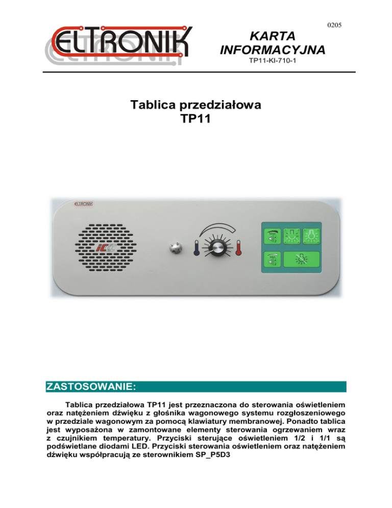KARTA INFORMACYJNA Tablica przedziałowa TP11