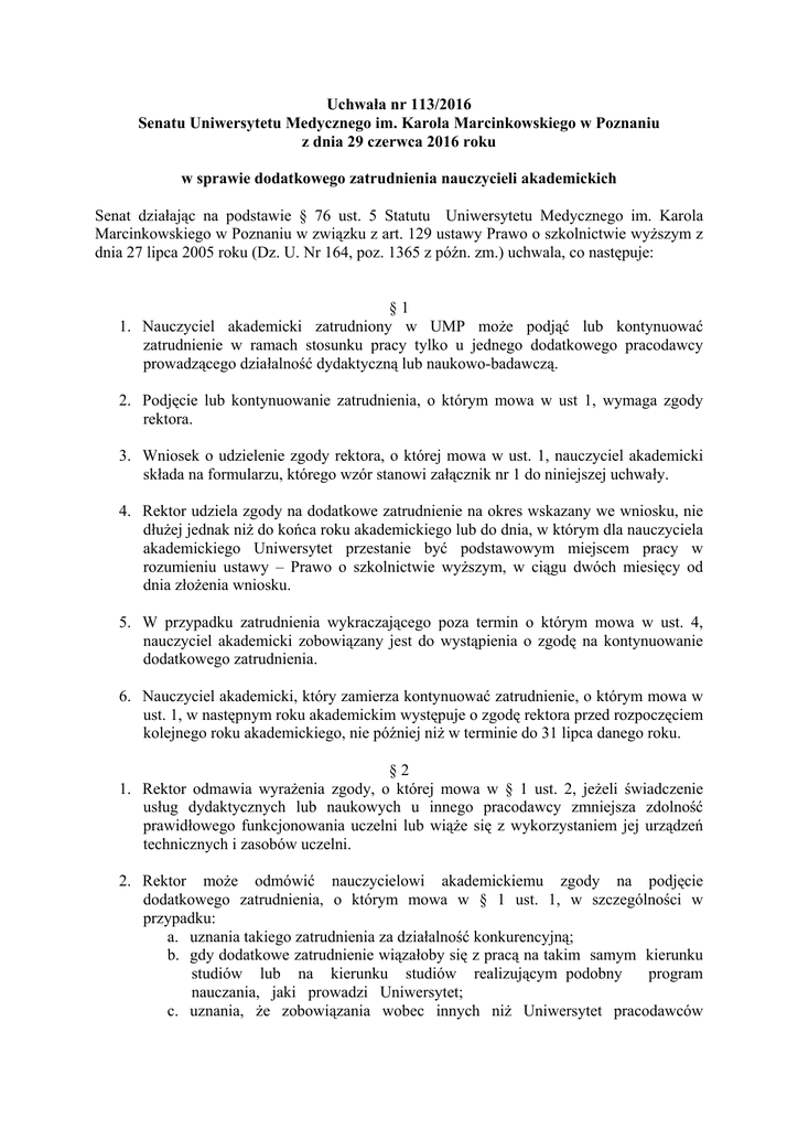 Uchwała 113/2016 - Uniwersytet Medyczny im. Karola