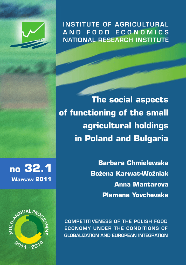 I N S T I T U T E O F A G R I C U LT U R A L AND FOOD ECONOMICS NATIONAL RESEARCH INSTITUTE The social aspects of functioning of the small agricultural holdings in Poland and Bulgaria no n o 32.1 Warsaw W arsaw 2011 Barbara Chmielewska Bożena Karwat-Woźniak Anna Mantarova Plamena Yovchevska COMPETITIVENESS OF THE POLISH FOOD ECONOMY UNDER THE CONDITIONS OF GLOBALIZATION AND EUROPEAN INTEGRATION The social aspects of functioning of the small agricultural holdings in Poland and Bulgaria I N S T I T U T E O F A G R I C U LT U R A L AND FOOD ECONOMICS NATIONAL RESEARCH INSTITUTE The social aspects of functioning of the small agricultural holdings in Poland and Bulgaria Scientific editors dr inż. Agnieszka Wrzochalska Authors: dr inż. Barbara Chmielewska dr inż. Bożena Karwat-Woźniak Prof Anna Mantarova, Institute for the Study of Societies and Knowledge at BAS Prof Plamena Yovchevska, Institute of Agricultural Economics at AA, Sofia COMPETITIVENESS OF THE POLISH FOOD ECONOMY UNDER THE CONDITIONS OF GLOBALIZATION AND EUROPEAN INTEGRATION Warsaw 2011 This publication was prepared as a contribution to the research on the following subject Changes in the socio-economic structure of rural areas as a competitive factor of rural areas within the framework of the research task Human capital in the structural transformation process of rural areas and agriculture. The objective of this report is to define and analyse selected social aspects of the functioning of small farms in Poland and Bulgaria. Reviewer dr Tadeusz Kmieciski Translated by Agit Tumaczenia Technical editor Leszek lipski Cover Project AKME Projekt Sp. z o.o. ISBN 978-83-7658-209-2 Instytut Ekonomiki Rolnictwa i Gospodarki ywnociowej – Pastwowy Instytut Badawczy 00-950 Warszawa, ul. witokrzyska 20, skr. poczt. nr 984 tel.: (22) 50 54 444 faks: (22) 50 54 636 e-mail: [email protected] http://www.ierigz.waw.pl Introduction 7 Agnieszka Wrzochalska, PhD 1. Semi-subsistence farms in the context of the future of CAP in Poland 12 Barbara Chmielewska, PhD 1.1. A general description of holdings 12 1.1.1. Production directions and area 1.1.2 Holdings according to the proportion of direct sales 1.1.3. The demographic profile of holders of private farms 12 16 17 1.2. The economic situation of semi-subsistence holdings 19 1.2.1. The income of households of farmers according to farm budget surveys 20 1.3. The contribution of semi-subsistence farms in the provision of environmental public goods 24 1.3.1. Regional differentiation in supplying environmental public goods 26 2. 28 The social and demographic structure of the semisubsistence farm population Boena Karwat-Woniak, PhD 2.1. 2.2. 2.3. 2.4. 3. The family situation and demographic profile of the semisubsistence farm population The education level of the population The demographic profile and enrolment level of holding managers The vocational activeness of the population Social significance of the small acreage agriculture in Bulgaria 28 29 30 32 36 Anna Mantarova, Assoc. Prof.; Plamena Yovchevska, Assoc. Prof 3.1. 3.2. 3.3. Development of the CAP toward social aims Environmental protection High quality and healthy foods Summary and conclusions Literature 36 37 44 51 54 Introduction The classification of agricultural holdings uses various criteria, which include legal and official, property, income, production, market, according to the profile of the user, etc. The definition and separation of private farm categories also used the criterion of commercial production value or economic size1, since both of them determine the market position and economic strength of the holdings, and in turn the ability to compete. The main determinant describing agricultural holdings in countries with low intensiveness of agricultural economy is assumed as the area of the land used. The main determinant describing agricultural holdings in countries with high intensiveness of agricultural economy is assumed as the value of sold production and the amount of obtained revenue (the role of land and labour as production factors is falling). According to Art. 34 of the Council Resolution (EC No. 1698/2005), semisubsistence (small commercial) agricultural holdings are those which “produce primarily for their own consumption and also market a proportion of their output”. This definition is based on the conviction that agricultural holdings are divided into semi-subsistence and typically commercial (commercial)2, or in other words, unable to compete and holding the ability to compete3, in the transforming economic reality. EU Member States have a comparable measure of farm size, which is the European Size Unit (ESU)4. This measure is particularly useful in a dynamic depiction, since it allows analysis in the conditions of a changing situation in the agricultural markets and agricultural environment5. 1 The economic value of a holding expressed with the ESU number is defined by dividing the sum of the standard gross margins calculated in Euro by 1200. 2 In Poland, there is also another, third holding group – non-commercial, which uses production exclusively for self-subsistence, i.e. the food needs of the family. 3 The competitive ability (ability to compete) is a permanent ability of the managing entities to acquire and preserve a share in the local, regional, domestic or even international markets under the conditions of access to the said markets [Józwiak 2009]. 4 European Size Unit (ESU) – it is used to express the economic size (strength) of agricultural holdings, i.e. their profitability (1 ESU = 1200 EUR). The economic size (strength) of agricultural holdings is calculated on the basis of the “Regional Factors of Standard Gross Margins” (SGM). The Standard Gross Margin (SGM) for an agricultural product is the standard (threeyear average in a defined region) production value obtained from 1 hectare or 1 animal, reduced by standard direct costs necessary to create this product. 5 “Let us assume that 