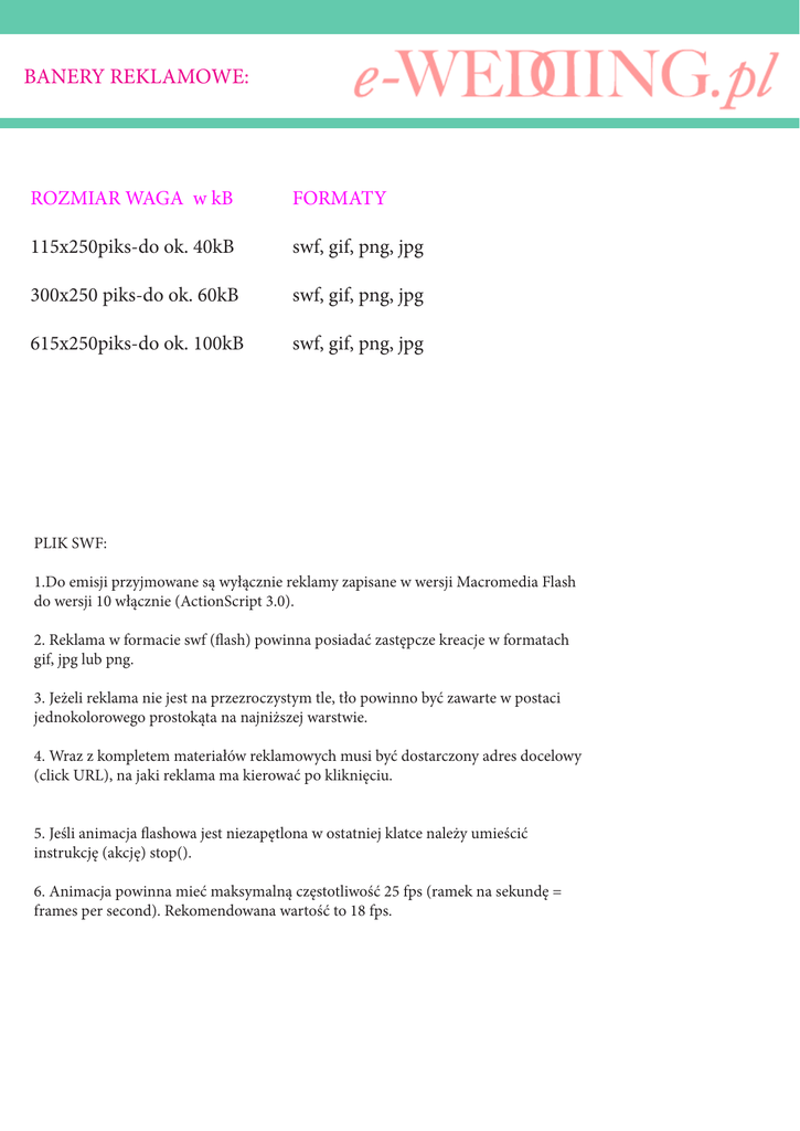 2. Reklama w formacie swf (flash) powinna posiadać zastępcze kreacje w formatach