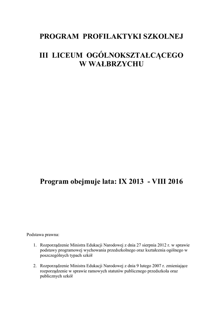PROGRAM PROFILAKTYKI SZKOLNEJ III LICEUM