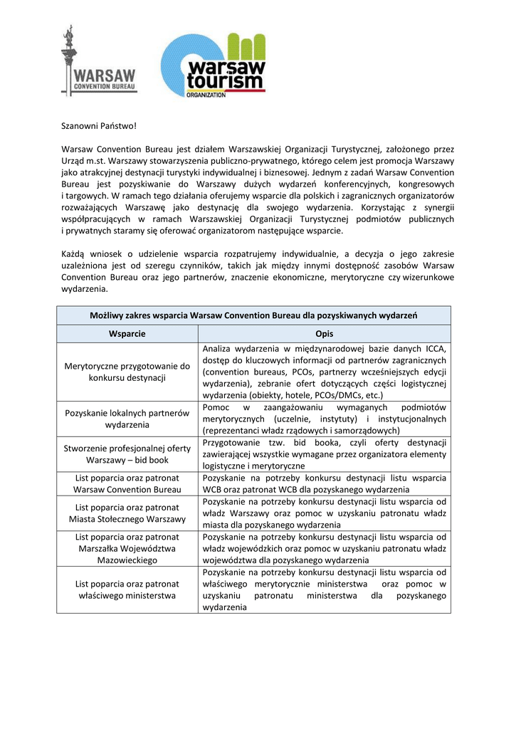 Pobierz ofertę wsparcia - Warsaw Convention Bureau