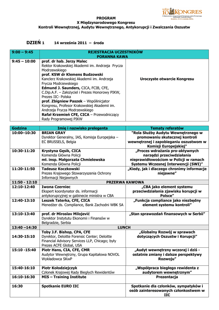 PROGRAM X Międzynarodowego Kongresu Kontroli Wewnętrznej