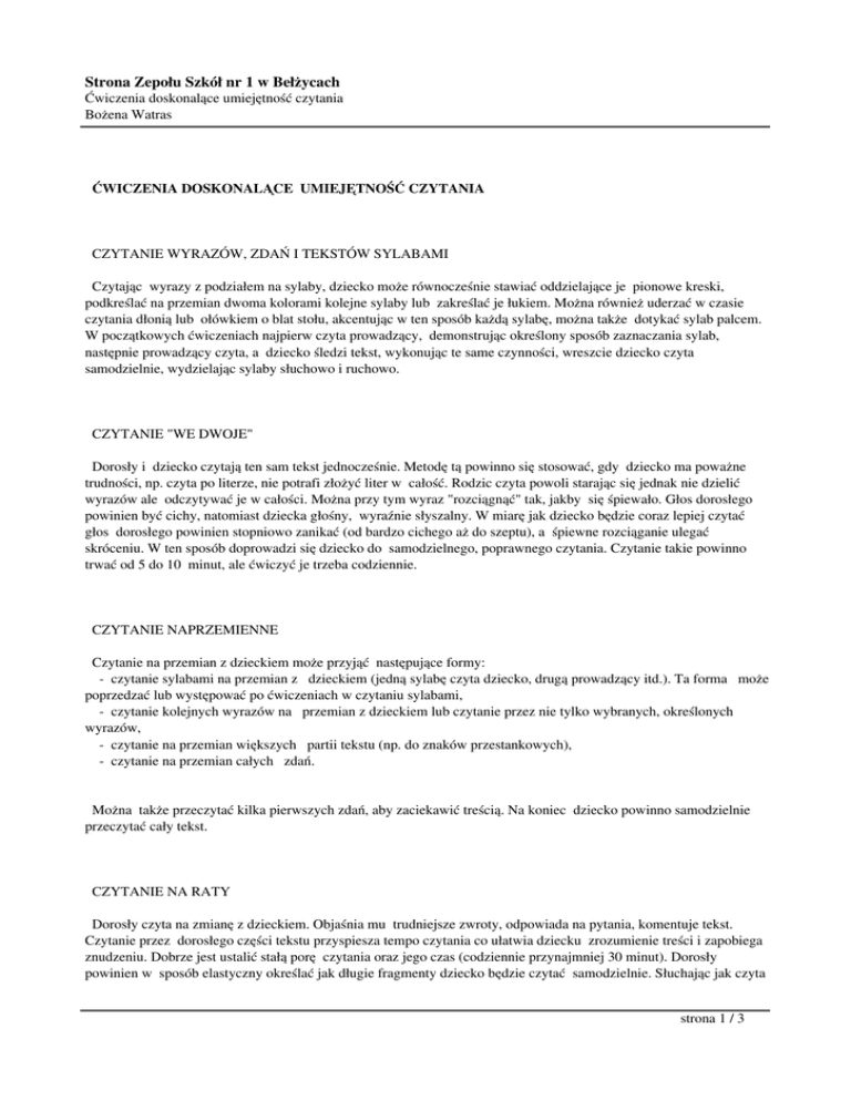 skróceniu. W ten sposób doprowadzi się dziecko do samodzielnego, poprawnego czytania. Czytanie takie powinno
