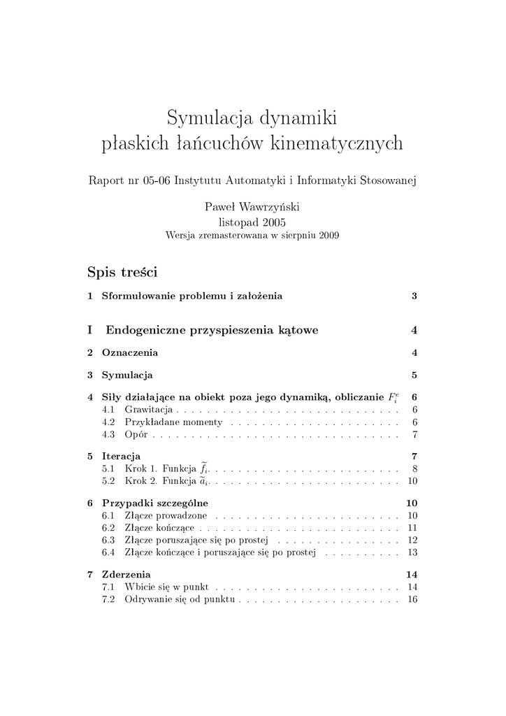 Symulacja dynamiki pªaskich ªa«cuchów kinematycznych