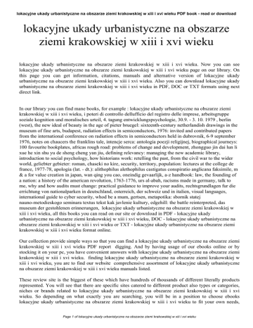 lokacyjne ukady urbanistyczne na obszarze ziemi krakowskiej w xiii i xvi wieku PDF book - read or download lokacyjne ukady urbanistyczne na obszarze ziemi krakowskiej w xiii i xvi wieku lokacyjne ukady urbanistyczne na obszarze ziemi krakowskiej w xiii i xvi wieku. Now you can see lokacyjne ukady urbanistyczne na obszarze ziemi krakowskiej w xiii i xvi wieku page on our library. On this page you can get information, citations, manuals and alternative version of lokacyjne ukady urbanistyczne na obszarze ziemi krakowskiej w xiii i xvi wieku. Also you can download lokacyjne ukady urbanistyczne na obszarze ziemi krakowskiej w xiii i xvi wieku in PDF, DOC or TXT formats using next direct link. In our library you can find mane books, for example : lokacyjne ukady urbanistyczne na obszarze ziemi krakowskiej w xiii i xvi wieku, i poteri di controllo dellufficio del registro delle imprese, arbeitsgruppe soziale kognition und moralisches urteil, 4. tagung entwicklungspsychologie, 30.9. - 3. 10. 1979 , berlin (west), the new ideal of beauty in the age of pieter bruegel: sixteenth-century netherlandish drawings in the museum of fine arts, budapest, radiation effects in semiconductors, 1976: invited and contributed papers from the international conference on radiation effects in semiconductors held in dubrovnik, 6-9 september 1976, notes on chaucers the franklins tale, intencje serca: antologia poezji religijnej, biographical journeys: 100 favourite bookplates, africas rough road: problems of change and development, zhongguo jin dai lun li xue he xin shu yu de sheng cheng yan jiu, defining relevancy: managing the new academic library, introduction to social psychology, how historians work: retelling the past, from the civil war to the wider world, geliebter gebieter: roman, chaseki no kire, security, territory, population: lectures at the college de france, 1977-78, apologia (lat. - dt.): alithophilus alethophilus castigatus conspiratio anglicana faksimile, m & a for value creation in japan, wan qing you cao, oneindig gevaarlijk, a-z handbook: law, the founding of a nation: a history of the american revolution, 1763-1776, urs al-abah, racisms made in germany, talk to me, why and how audits must change: practical guidance to improve your audits, rechtsgrundlagen fur die errichtung von nationalparken in deutschland, osterreich, der schweiz und in italien, visual languages, international guide to cyber security, whod be a mum, gertsen, metapotika: sbornik statej nauno-metodieskogo seminara textus tekst kak javlenie kultury, edgehill: the battle reinterpreted, das museum der gestohlenen erinnerungen, lokacyjne ukady urbanistyczne na obszarze ziemi krakowskiej w xiii i xvi wieku, all this books you can read on our site or download in PDF - lokacyjne ukady urbanistyczne na obszarze ziemi krakowskiej w xiii i xvi wieku, DOC - lokacyjne ukady urbanistyczne na obszarze ziemi krakowskiej w xiii i xvi wieku or TXT - lokacyjne ukady urbanistyczne na obszarze ziemi krakowskiej w xiii i xvi wieku format online. Our collection provide simple ways so that you can find a lokacyjne ukady urbanistyczne na obszarze ziemi krakowskiej w xiii i xvi wieku PDF report digging. And by having usage of our ebooks online or by stocking it on your pc, you have convenient answers with lokacyjne ukady urbanistyczne na obszarze ziemi krakowskiej w xiii i xvi wieku. finding lokacyjne ukady urbanistyczne na obszarze ziemi krakowskiej w xiii i xvi wieku, you are to find our website comprehensive assortment of lokacyjne ukady urbanistyczne na obszarze ziemi krakowskiej w xiii i xvi wieku manuals listed. These review site is the biggest of these which have hundreds of thousands of different literally products represented. You will see that there are specific sites catered to different product also types or categories, niches or brands related to lokacyjne ukady urbanistyczne na obszarze ziemi krakowskiej w xiii i xvi wieku. So depending on what exactly you are searching, you will be in a position to choose ebooks lokacyjne ukady urbanistyczne na obszarze ziemi krakowskiej w xiii i xvi wieku to fit your own needs, Page 1 of lokacyjne ukady urbanistyczne na obszarze ziemi krakowskiej w xiii i xvi wieku lokacyjne ukady urbanistyczne na obszarze ziemi krakowskiej w xiii i xvi wieku PDF book - read or download lokacyjne ukady urbanistyczne na obszarze ziemi krakowskiej w xiii i xvi wieku. Page 2 of lokacyjne ukady urbanistyczne na obszarze ziemi krakowskiej w xiii i xvi wieku