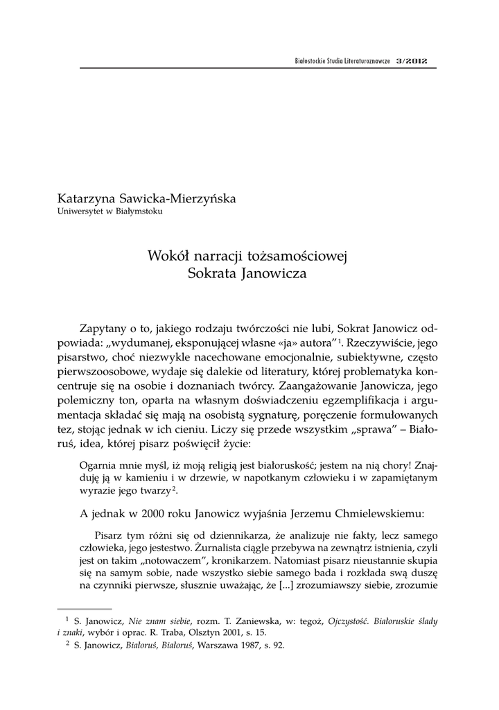 Wokół narracji tożsamościowej Sokrata Janowicza