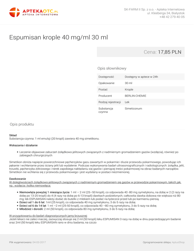 Espumisan krople 40 mg/ml 30 ml - Apteka Internetowa AptekaOTC.pl