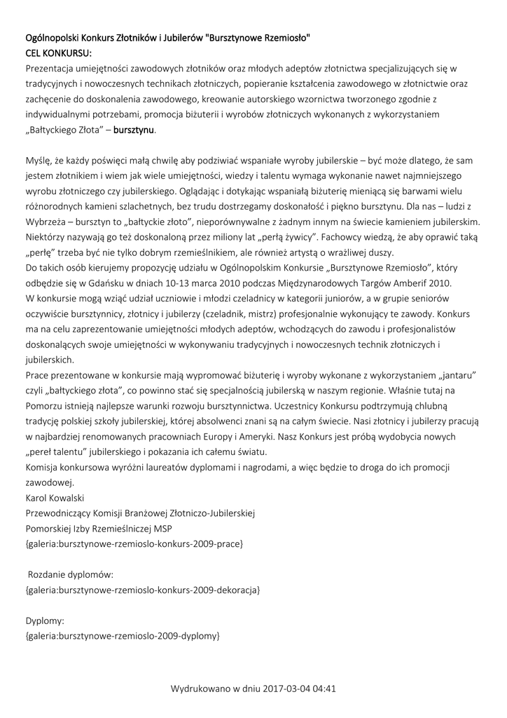 oczywiście bursztynnicy, złotnicy i jubilerzy (czeladnik, mistrz) profesjonalnie wykonujący te zawody. Konkurs