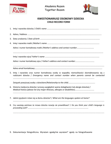 kwestionariusz osobowy dziecka - Together