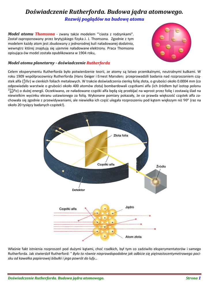 NT. Doświadczenie Rutherforda. Budowa jądra atomowego.