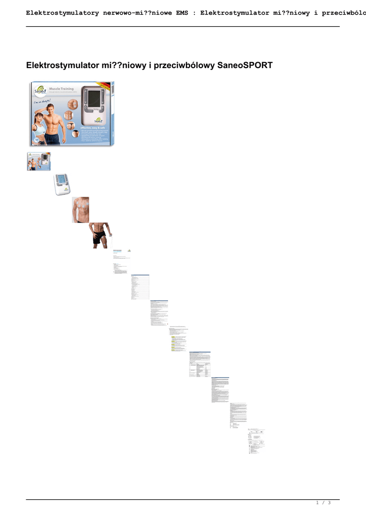 Elektrostymulatory nerwowo-mi??niowe EMS : Elektrostymulator mi??niowy i przeciwbólo Elektrostymulator mi??niowy i przeciwbólowy SaneoSPORT 1 / 3 Elektrostymulatory nerwowo-mi??niowe EMS : Elektrostymulator mi??niowy i przeciwbólo Prosty i ?atwy w u?yciu dwukana?owy elektrostymulator do celów sportowych oraz rehabilitacyjnych wykonuj?cy stymulacj? EMS (nerwowomi??niow?) oraz TENS (przeciwbólow?), wyprodukowany przez niemieck? firm? tic Medizintechnik. Ocena: Nie ma jeszcze oceny Cena Cena sprzeda?y 299,00 z? Zapytaj o produkt Opis SaneoSPORT jest doskona?ym uzupe?nieniem treningu sportowego oraz rehabilitacji. Pomaga wy?wiczy? i szybciej rozbudowa? wybrane grupy mi??ni, a tak?e spali? nadmiar tkanki t?uszczowej. Zmusza mi??nie do wysi?ku bez obci??ania ?ci?gien i stawów. Mo?e by? stosowany przed, w trakcie i po ?wiczeniach wysi?kowych, a tak?e w wolnym czasie - podczas ogl?dania telewizji, czytania lub przy pracy, czy nawet na spacerze. Efektywny, prosty i bezpieczny sposób, aby: Rozbudowa? i wzmocni? mi??nie klatki piersiowej, r?k (bicepsy, tricepsy) i nóg Uj?drni? mi??nie brzucha i po?ladków Wykona? rozgrzewk? przed ?wiczeniami Zwi?kszy? efekty aktywnych form sportu (jogging, jazda na rowerze, tenis, pi?ka no?na, p?ywanie, ?y?wiarstwo): formowanie mi??ni, poprawa wygl?du, wzrost energii i wiary w siebie. Utrzyma? form? w okresach przetrenowania. U?mierzy? ból pourazowy, np. po zbyt forsownych ?wiczeniach na si?owni. Zrelaksowa?, zregenerowa? lub rozci?gn?? swoje mi??nie po treningu. Cechy charakterystyczne SaneoSPORT: 20 programów (w tym 2 indywidualne) 2 kana?y regulowane niezale?nie do leczenia wielu obszarów cia?a jednocze?nie Bardzo ?atwy w u?yciu Du?y czytelny ekran Funkcja timera (automatyczne wy??czenie) Wszechstronne zabezpieczenia Certyfikowany do zastosowa? medycznych CE (0482) Zawiera: 0.8 samoprzylepnych elektrod (cztery 5x5cm, cztery 5x9cm) 0.Klips do za?o?enia na pasek 0.Wysokiej jako?ci bateria 9V 6F22 (mo?na stosowa? akumulatory - patrz ni?ej) Zestawienie programów SaneoSPORT Program 1. Rozgrzewka I 2. Rozgrzewka II Opis Optymalnie przygotowuje mi??nie nieprzyzwyczajone do aktywno?ci sportowej. Wspomaganie cyrkulacji krwi i stymulacja metabolizmu znacznie usprawnia zdolno?? mi??ni do skurczy. Podczas stosowania b?d? odczuwalne orze?wiaj?ce doznania przyjemnego ciep?a. Najlepiej stosowa? 30 minut przed rozgrzewk?. Skutkuje tworzeniem si? g?stej sieci naczy? kapilarnych formowanej wokó? w?ókien mi??niowych. Przyczynia si? do ekstremalnej intensyfikacji cyrkulacji krwi i dostawy tlenu stymulowanym mi??niom. Poprawia si? równie? dostawa glukozy i nast?puje szybsza eliminacja kwasu mlekowego. Po zastosowaniu tego programu, zarówno wysi?ek fizyczna, jak i aktywno?? sportowa b?dzie si? wi?za?a z lepszym samopoczuciem, a czas odpoczynku po sesji treningowej znacznie si? skróci. 3. Mi??nie klatki piersiowej, barków i grzbietu. 4. Mi??nie przedniej i tylnej cz??ci ramion I Trening rozbudowy mi??ni. Przystosowany do przedramion (w tym bicepsy i tricepsy) konkretnych charakterystyk mi??ni 5. Proste i sko?ne mi??nie brzucha, umi??nienieposzczególnych cz??ci cia?a. dolnego odcinka kr?gos?upa 6. Mi??nie po?ladkowe 7. Mi??nie udowe 8. Mi??nie podudzia 9. Trening wytrzyma?o?ci aerobowej Znacz?co zwi?ksza zu?ycie tlenu przez mi??nie na stymulowanym obszarze, co w konsekwencji wykszta?ca i zwi?ksza nap?yw tlenu i zdolno?? absorpcyjn?. Nie towarzysz? temu przy tym ?adne napr??enia ?ci?gien i stawów. Optymalny trening wytrzyma?o?ciowy wyst?puje w przemianie aerobowej, kiedy organizm 2 / 3 Elektrostymulatory nerwowo-mi??niowe EMS : Elektrostymulator mi??niowy i przeciwbólo 10. Trening wytrzyma?o?ci anaerobowej (beztlenowej) 11. Trening si?owy i szybko?ci si?owej 12. Trening si?y eksplozywnej 13. Trening przekrojowy (crosstraining) 14. Relaksacja 15. Odnowa si? 16. Stretching (rozci?ganie) 17. U?mierzanie bólu I 18. U?mierzanie bólu II U1. Rozbudowa mi??ni I U2. Rozbudowa mi??ni II zaopatrywany jest w wystarczaj?c? ilo?? tlenu, czyli gdy nap?yw tlenu równowa?ony jest przez pobór tlenu. Efektem tego jest spalanie t?uszczu. Ponadto zu?ywane s? jedynie dost?pne rezerwy, np. cukier. Do sportów aerobowych zaliczamy w?drówki, spacery, p?ywanie, jazd? na rowerze, jogging, narciarstwo prze?ajowe, ?y?wiarstwo, jazda na rolkach. Celem treningu wytrzyma?o?ci anaerobowej jest zachowanie zdolno?ci do intensywnego wysi?ku tak d?ugo, jak to tylko mo?liwe. W tym wypadku, organizm nie jest zaopatrywany w dostateczn? ilo?? tlenu, aby produkowa? energi?, co wymusza metabolizm w warunkach niedoboru tlenu. Organizm zmuszany jest do produkcji energii w inny sposób i innymi ?rodkami, np. spalaj?c w?glowodany. Do sportów anaerobowych zaliczamy podnoszenie ci??arów, sprint, czy sporty typu „stop-and-go”, np. tenis i squash. Program zapewnia wi?ksz? tolerancj? na rosn?c? koncentracj? kwasu mlekowego i poprawia przeciwdzia?anie zm?czeniu przez mi??nie. Si?a i szybko?? wymagane s? w nast?puj?cych rodzajach sportu: kolarstwo wyczynowe, p?ywanie na czas, sporty zespo?owe typu pi?ka no?na, pi?ka r?czna, siatkówka. Program ten pomaga osi?gn?? zarówno maksymaln? si??, jak i szybko?? skurczu stymulowanych mi??ni, dzi?ki wyj?tkowym rodzajom skurczy mi??niowych i wymuszaniu ekstremalnego wysi?ku. Poprawia zdolno?? mi??ni do osi?gni?cia najwy?szego poziomu si?y w jak najkrótszym czasie, przy jednoczesnym ograniczeniu ilo?ci aktywnych sesji treningowych. Trening si?y eksplozywnej jest cz?sto spotykany przy nast?puj?cych rodzajach sportu: sprint i p?ywanie krótkodystansowe, skok wzwy? i skok w dal, bieg przez p?otki, rzuty sportowe itd. ??czy w sobie ró?ne sekwencje treningowe i jest dedykowany dla osób uprawiaj?cych sport rekreacyjnie chc?cych osi?gn?? dobr? kondycj? w ró?nych rodzajach aktywno?ci mi??ni (wytrzyma?o?? aerobowa i anaerobowa, si?a, szybko?? si?owa i si?a eksplozywna). Równie? zaawansowani kultury?ci powinni stosowa? ten program na pocz?tku sezonu lub po d?u?szym okresie ni