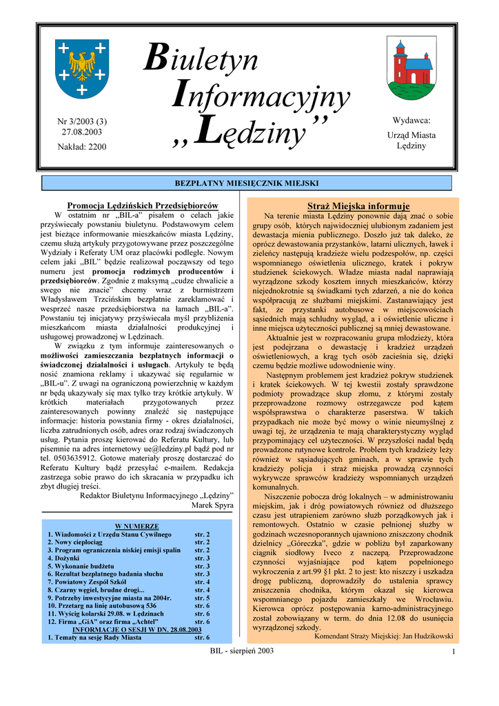 Biuletyn Informacyjny Lędziny Lędziny teraz! Nr 3/2003