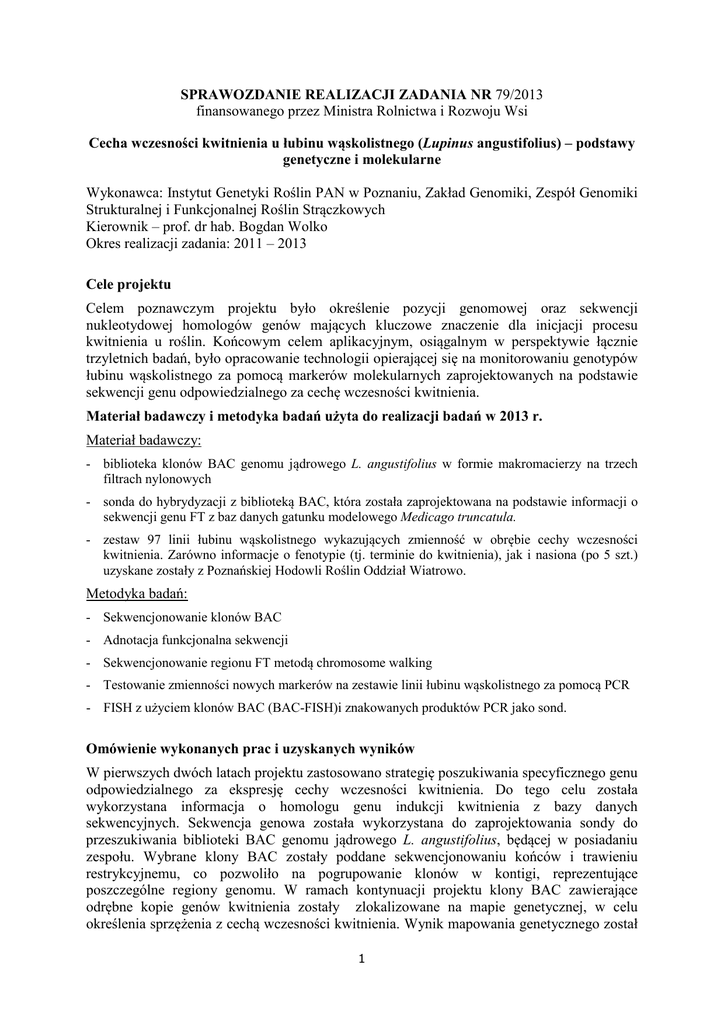 sprawozdanie 2013 - Instytut Genetyki Roślin