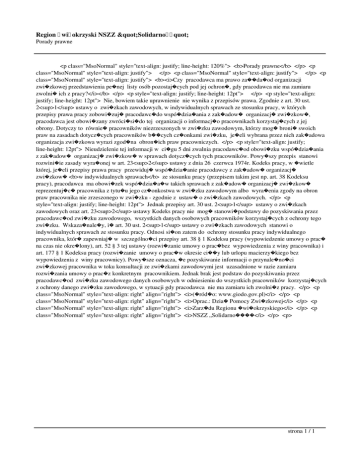 Region �wi�okrzyski NSZZ "Solidarno��quot; Porady prawne <p class="MsoNormal" style="text-align: justify; line-height: 120%"> <b>Porady prawne</b> </p> <p class="MsoNormal" style="text-align: justify"> </p> <p class="MsoNormal" style="text-align: justify"> </p> <p class="MsoNormal" style="text-align: justify"> <b><i>Czy pracodawca ma prawo za��da�od organizacji zwi�zkowej przedstawienia pe�nej listy osób pozostaj�cych pod jej ochron�, gdy pracodawca nie ma zamiaru zwolni� ich z pracy?</i></b> </p> <p style="text-align: justify; line-height: 12pt"> </p> <p style="text-align: justify; line-height: 12pt"> Nie, bowiem takie uprawnienie nie wynika z przepisów prawa. Zgodnie z art. 30 ust. 2<sup>1</sup> ustawy o zwi�zkach zawodowych, w indywidualnych sprawach ze stosunku pracy, w których przepisy prawa pracy zobowi�zuj� pracodawc�do wspó�dzia�ania z zak�adow� organizacj� zwi�zkow�, pracodawca jest obowi�zany zwróci�si�do tej organizacji o informacj�o pracownikach korzystaj�cych z jej obrony. Dotyczy to równie� pracowników niezrzeszonych w zwi�zku zawodowym, którzy mog� broni� swoich praw na zasadach dotycz�cych pracowników b��cych cz�onkami zwi�zku, je�eli wybrana przez nich zak�adowa organizacja zwi�zkowa wyrazi zgod�na obron�ich praw pracowniczych. </p> <p style="text-align: justify; line-height: 12pt"> Nieudzielenie tej informacji w ci�gu 5 dni zwalnia pracodawc�od obowi�zku wspó�dzia�ania z zak�adow� organizacj� zwi�zkow� w sprawach dotycz�cych tych pracowników. Powy�szy przepis stanowi rozwini�ie zasady wyra�onej w art. 23<sup>2</sup> ustawy z dnia 26 czerwca 1974r. Kodeks pracy, w �wietle której, je�eli przepisy prawa pracy przewiduj� wspó�dzia�anie pracodawcy z zak�adow� organizacj� zwi�zkow� <b>w indywidualnych sprawach</b> ze stosunku pracy (przepisem takim jest np. art. 38 Kodeksu pracy), pracodawca ma obowi�zek wspó�dzia�a�w takich sprawach z zak�adow� organizacj� zwi�zkow� reprezentuj�c� pracownika z tytu�u jego cz�onkostwa w zwi�zku zawodowym albo wyra�enia zgody na obron praw pracownika nie zrzeszonego w zwi�zku - zgodnie z ustaw� o zwi�zkach zawodowych. </p> <p style="text-align: justify; line-height: 12pt"> Jednak przepisy art. 30 ust. 2<sup>1</sup> ustawy o zwi�zkach zawodowych oraz art. 23<sup>2</sup> ustawy Kodeks pracy nie mog� stanowi�podstawy do pozyskiwania przez pracodawc�od zwi�zku zawodowego, wszystkich danych osobowych pracowników korzystaj�cych z ochrony tego zwi�zku. Wskaza�nale�y, i� art. 30 ust. 2<sup>1</sup> ustawy o zwi�zkach zawodowych stanowi o indywidualnych sprawach ze stosunku pracy. Odnosi si�on zatem do ochrony stosunku pracy indywidualnego pracownika, któr� zapewniaj� w szczególno�ci przepisy art. 38 § 1 Kodeksu pracy (wypowiedzenie umowy o prac� na czas nie okre�lony), art. 52 § 3 tej ustawy (rozwi�zanie umowy o prac�bez wypowiedzenia z winy pracownika) i art. 177 § 1 Kodeksu pracy (rozwi�zanie umowy o prac�w okresie ci��y lub urlopu macierzy�kiego bez wypowiedzenia z winy pracownicy). Powy�sze oznacza, �e pozyskiwanie informacji o przynale�no�ci zwi�zkowej pracownika w toku konsultacji ze zwi�zkami zawodowymi jest uzasadnione w razie zamiaru rozwi�zania umowy o prac�z konkretnym pracownikiem. Jednak brak jest podstaw do pozyskiwania przez pracodawc�od zwi�zku zawodowego danych osobowych w odniesieniu do wszystkich pracowników korzystaj�cych z ochrony danego zwi�zku zawodowego, w sytuacji gdy pracodawca nie ma zamiaru ich zwolni�z pracy. </p> <p class="MsoNormal" style="text-align: right" align="right"> <i>(�ród�o: www.giodo.gov.pl)</i> </p> <p class="MsoNormal" style="text-align: right" align="right"> <i>Oprac.: Dzia� Pomocy Zwi�zkowej</i> </p> <p class="MsoNormal" style="text-align: right" align="right"> <i>Zarz�du Regionu �wi�okrzyskiego</i> </p> <p class="MsoNormal" style="text-align: right" align="right"> <i>NSZZ „Solidarno����</i> </p> <p> strona 1 / 1