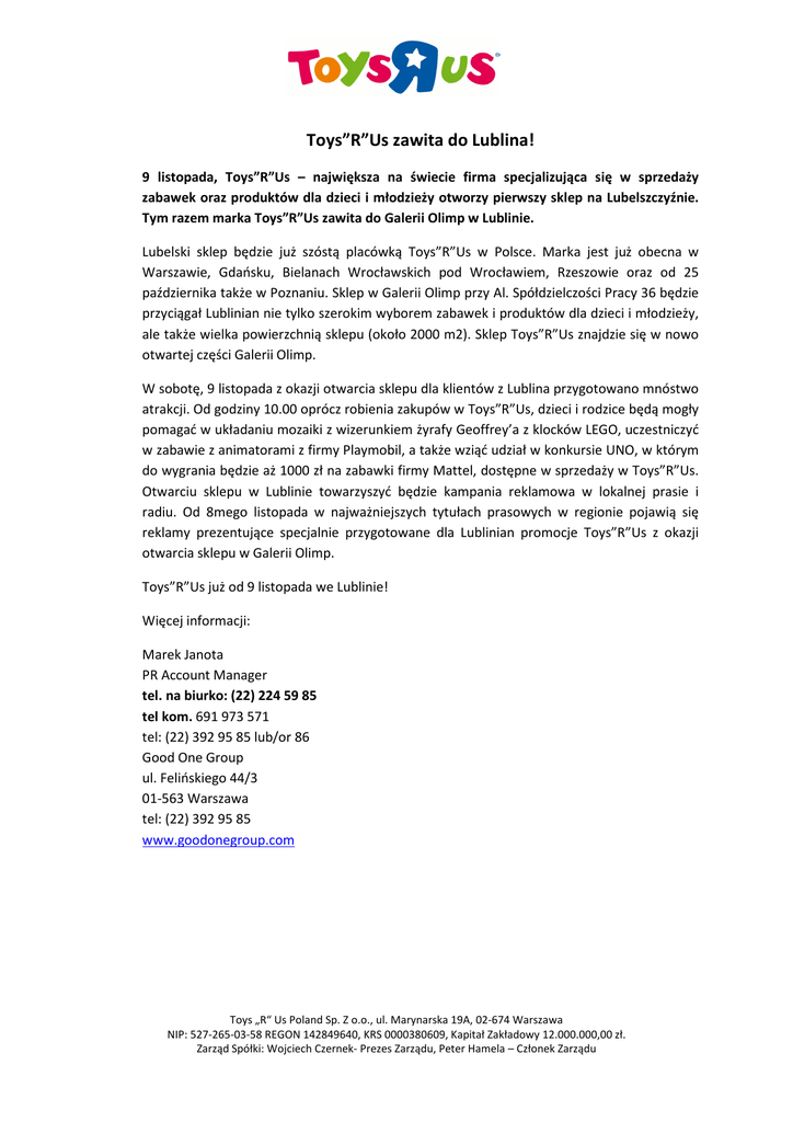 Toys_R_Us Lublin - INFORMACJA PRASOWA