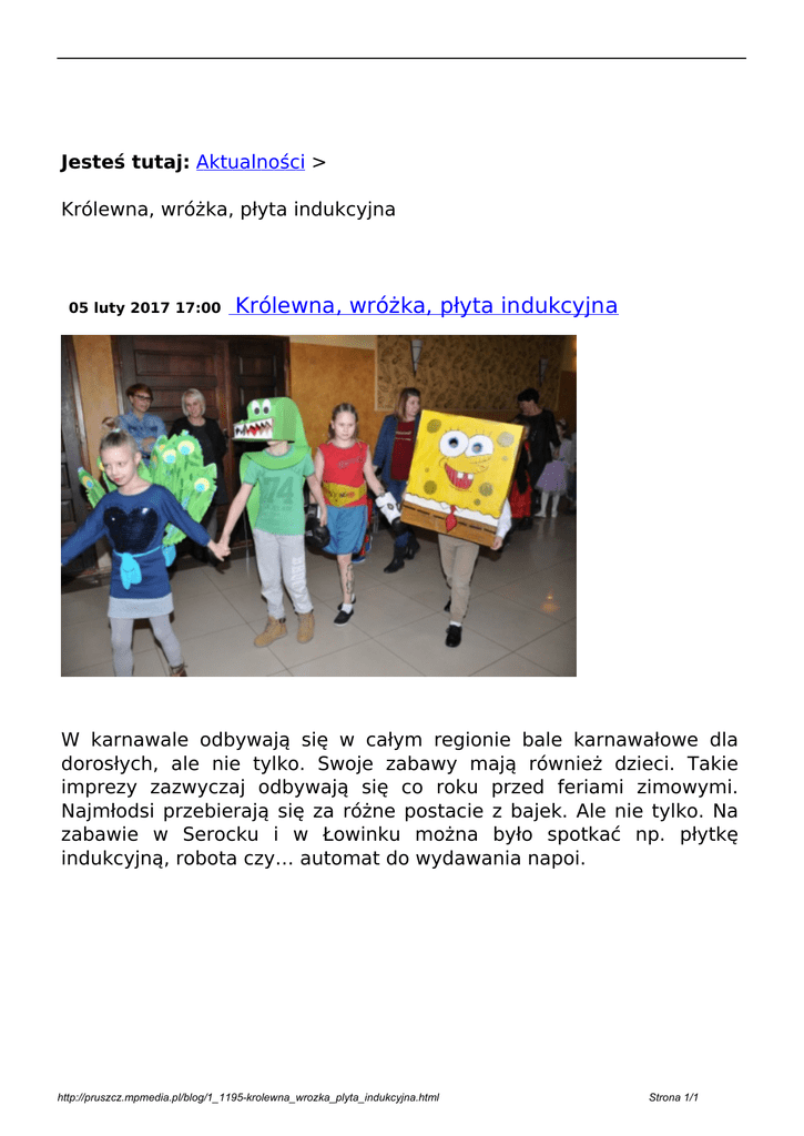 Jesteś tutaj: Aktualności > Królewna, wróżka, płyta indukcyjna 05 luty 2017 17:00 Królewna, wróżka, płyta indukcyjna W karnawale odbywają się w całym regionie bale karnawałowe dla dorosłych, ale nie tylko. Swoje zabawy mają również dzieci. Takie imprezy zazwyczaj odbywają się co roku przed feriami zimowymi. Najmłodsi przebierają się za różne postacie z bajek. Ale nie tylko. Na zabawie w Serocku i w Łowinku można było spotkać np. płytkę indukcyjną, robota czy… automat do wydawania napoi. http://pruszcz.mpmedia.pl/blog/1_1195-krolewna_wrozka_plyta_indukcyjna.html Powered by TCPDF (www.tcpdf.org) Strona 1/1