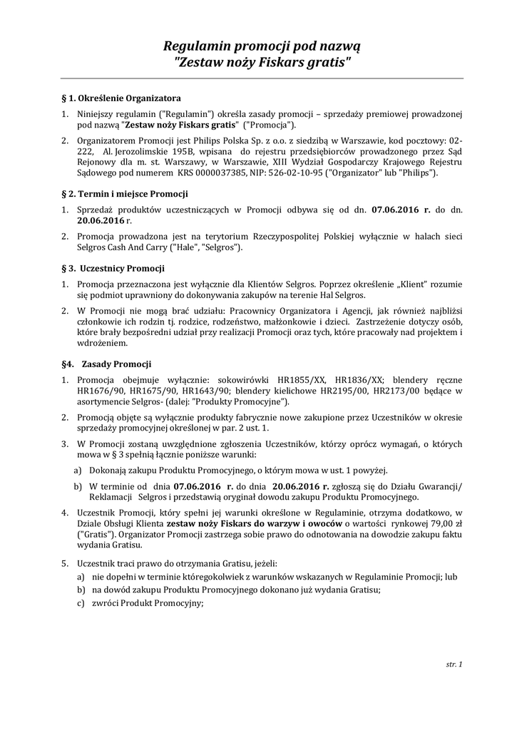 2. Organizatorem Promocji jest Philips Polska Sp. z o.o. z siedzibą w Warszawie, kod pocztowy: 02222, Al. Jerozolimskie 195B, wpisana do rejestru przedsiębiorców prowadzonego przez Sąd