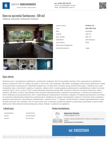 tel. (046) 855 60 03 email: [email protected] www: zyrardow.pln.com.pl Dom na sprzedaż Sochaczew - 128 m2 Lokalizacja: mazowieckie, sochaczewski, Sochaczew numer oferty D-6015-14 cena 620 000 PLN dom sprzedaż, metraż 128 m2 pow. działki 591 m2 zabudowa wolnostojący rok budowy 2013 informacje dodatkowe materiał budynku cegła Opis oferty Parterowy dom z nieużytkowym poddaszem o powierzchni użytkowej 104 m2 wg projektu Genewa. Dom usytuowany na ogrodzonej działce o powierzchni 591 m2, oddany do użytku w 2013 roku. Dom budowany "dla siebie", posiadający niskie koszty ogrzewania z uwagi na wysoką jakość zastosowanych materiałów budowlanych. W skład domu wchodzą: garaż, pomieszczenie gosp. -kotłownia oraz część mieszkalna: salon z kominkiem i jadalnią, 3 sypialnie - główna 16m2 z szafą wnękową, podwieszanym, podświetlanym sufitem oraz dwie sypialnie 15m2 i 12m2, kuchnia 7,5m2 z pełną zabudową drewnianą (sprzęt AGD: zmywarka, piekarnik, kuchenka indukcyjna, okap), spiżarka, hall 30m2. W domu zamontowano okna pasywne siedmiokomorowe z pakietem trzyszybowym, w salonie okna przesuwne w kuchni efektowne okna panoramiczne. Dom z rozprowadzonym ogrzewaniem centralnym olejowym. W każdym pomieszczeniu termostat do ustawiania indywidualnej temperatury pomieszczenia. Dodatkowo do sypialni rozprowadzony nadmuch z kominka. Brama wjazdowa i garażowa automatyczne. Zamontowany videodomofon - kolorowy ekran 7". Podjazd - kostka brukowa. Działka zagospodarowana: trawa, drzewka owocowe, bez, konwalie, róże. W całym domu oraz na zewnątrz oświetlenie ledowe co gwarantuje najmniejsze zużycie energii elektrycznej. Nieruchomość bardzo atrakcyjna cenowo. Polecam i zachęcam do oglądania. Lokalizacja Osoba kontaktowa Agnieszka Sawicka województwo mazowieckie powiat sochaczewski [email protected] miasto Sochaczew Chętnie udzielę dodatkowych informacji związanych z tą ofertą. Zapraszam do kontaktu! tel. 510225569 Zawsze dążymy do tego, aby informacje o proponowanych przez nas ofertach były jak najbardziej dokładne. Niekiedy jednak, ze względu na fakt, iż uzyskujemy je od osób trzecich nie jest możliwe ich zweryfikowanie, wobec czego należy traktować je orientacyjnie i nie stanowią one oferty w rozumieniu kodeksu cywilnego.