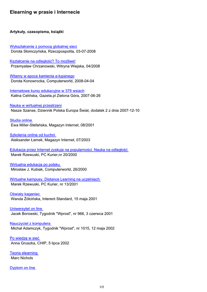 Elearning w prasie i Internecie