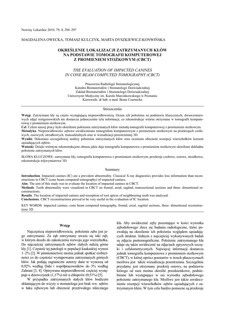 cbct - Nowiny Lekarskie - Uniwersytet Medyczny im. Karola