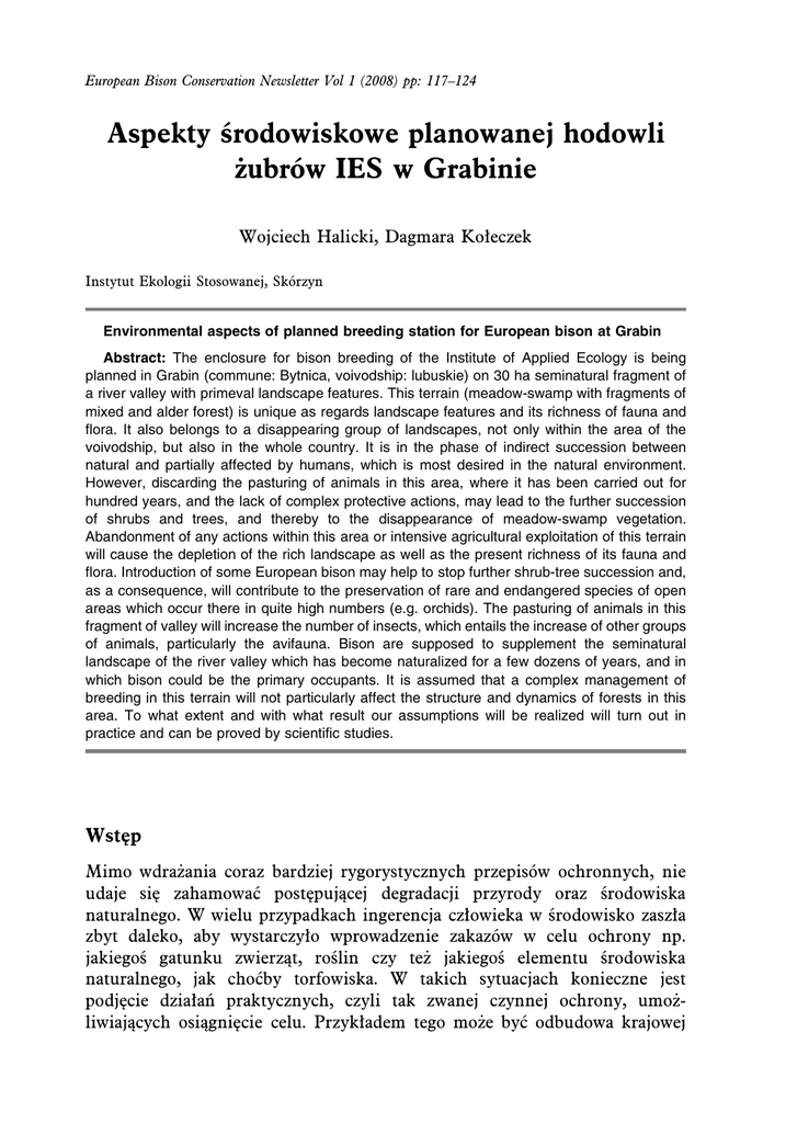Aspekty środowiskowe planowanej hodowli żubrów IES w Grabinie