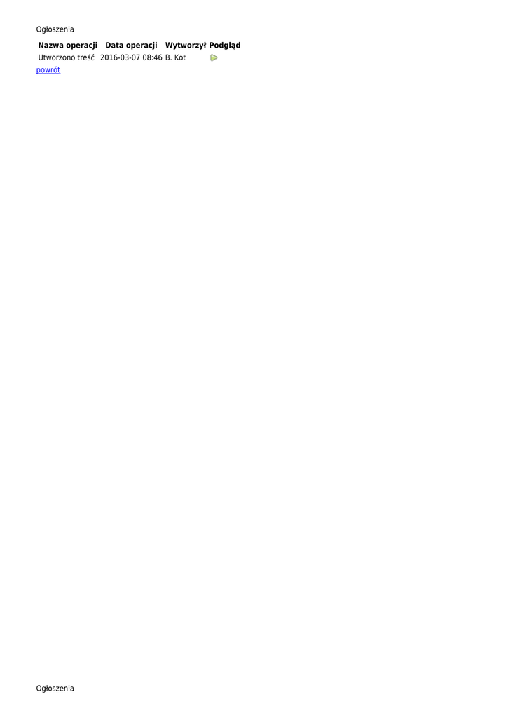 Ogłoszenia Ogłoszenia Nazwa operacji Data operacji Wytworzył