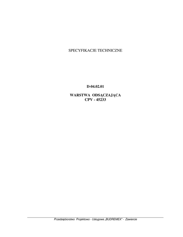 specyfikacje techniczne d-04.02.01 warstwa odsączająca cpv