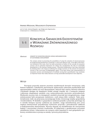 koncepcja świadczeń ekosystemów a wdrażanie zrównoważonego