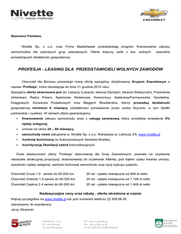 PROFESJA - LEASING DLA PRZEDSTAWICIELI WOLNYCH
