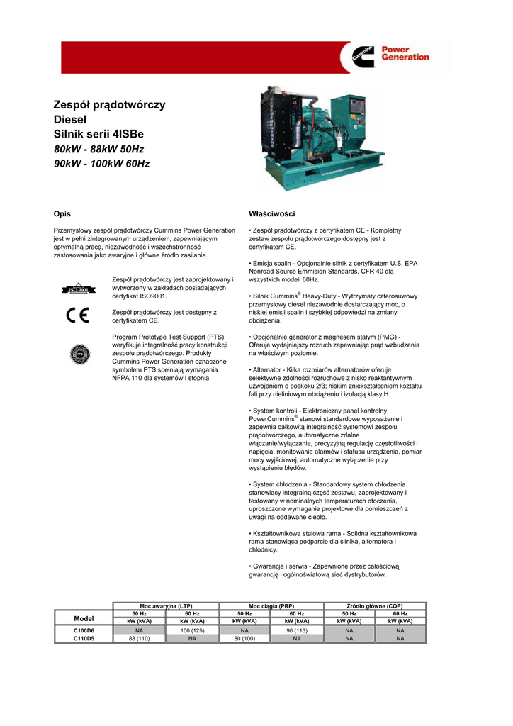 Zespół prądotwórczy Diesel Silnik serii 4ISBe