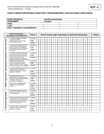 karta monitorowania podstawy programowej kształcenia ogólnego
