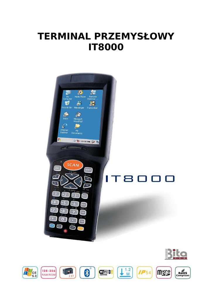 TERMINAL PRZEMYSŁOWY IT8000 Specyfikacja techniczna Procesor Zasilacz Intell/Marvell PXA270 - 624 Mhz 32 bits RISC CPU Pamięć operacyjna Sygnalizacja 256 MB M-System H3 Flash ROM 128MB Mobile SDRAM Wyświetlacz 2.8” TFT 256K kolorowy ekran LCD QVGA 240 x 320 Podświetlenie: 300NT LED backlight Ekran dotykowy 1 trójkolorowa dioda LED dla statusu ładowania I alarmu 1 dwukolorowa dioda LED i wibracja dla skanera 1 niebieska dioda LED dla Bluetooth (Opcja) 1 bursztynowa dioda LED dla WiFi (Opcja) Skaner kodów Laserowy skaner: SE955 Audio 1 głośnik mono Gniazdo słuchawkowe 2.5mm DIA stereo Klawiatura Rozszerzenie pamięci Gniazdo kart pamięci micro SD (kompatybilne z microSD SDHC Klawiatura numeryczna 32 przyciski, podświetlana Przycisk zasilania / podświetlenia Podświetlenie klawiatury włącza się automatycznie po wciśnięciu dowolnego przycisku. Przycisk skanowania I 4 przyciski nawigacyjne Wymiary Interfejsy komunikacyjne 1 łacze doku obsługujące RS232, DC-IN oraz USB Host/Client Łącze doku obsługuje kabel I dok Łącze USB 1.1 obsługuje USB Client USB Host / Client przełączane jest przez oprogramowanie Podawanie zasilania max. 200mA / 5V dla USB Host Opcje komunikacji bezprzewodowej PAN Blue-Tooth class II V2.0 Zasięg 10 m Może współistnieć z WiFi 100~240Vac, 50/60Hz Wejście 5Vdc/5.0Adc Wyjście Rozmiary: 175(D) x 66(56)(S) x 43(35)(W) mm Waga: 375g (powiększona bateria), 330g (standardowa bateria) Oprogramowanie WinCE 5.0 Professional z IE, Inbox and Active Sync. Backup manager, Scanner Setting utility, OBEX utility Narzędzia SDK I BSP Otoczenie pracy Temperatura pracy: -10~40°C Temperatura przechowywania: -25~60°C Wilgotność: 95% nie kondensująca przy 40°C Opcje komunikacji bezprzewodowej LAN Klasa odporności: IP54 Standard Odporność na upadek: 1.2m na twarde podłoże, 3 WiFi 802.11b/g upadki na 6 stron Zgodne z WPA orazIEEE 802.11i WPA2 Rozładowania elektrostatyczne: +/-8KV powietrze, Cisco Compatible Extensions (CCX) Version 3 +/-4KV kontakt Pełna obsługa 802.1x(EAP) włączając EAP-TLS, EAPFAST, LEAP, PEAP-MSCHAPv2 oraz PEAP-GTC Może współistnieć z Bluetooth Spełniane normy CE, CB, FCC, BSMI, CCC, cUL Baterie Zgodne z dyrektywą RoHS Podstawowa: 2000mAH, 3.7V Li-Ion Rozszerzona: 4000mAH, 3.7V Li-Ion (Opcja) Akumulator podtrzymania 15mAH, 2.4V Li-MH Czas ładowania: 3.5h. dla 4000mAH, 3.0h. dla 2000mAH ASKA S.C. 04-869 Warszawa, ul. Wędkarska 2A/B1 tel. (22) 498 59 08/9, fax. (22) 617 70 20 www.kodykreskowe.com [email protected]