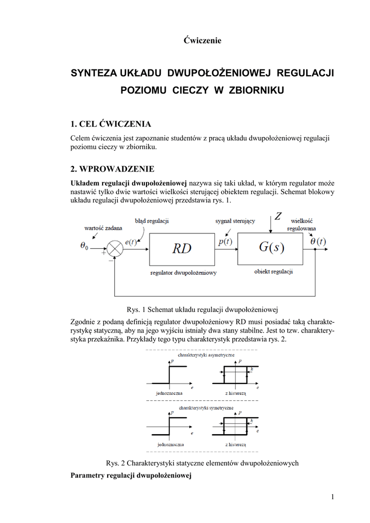 synteza układu dwupołożeniowej regulacji poziomu cieczy w zbiorniku