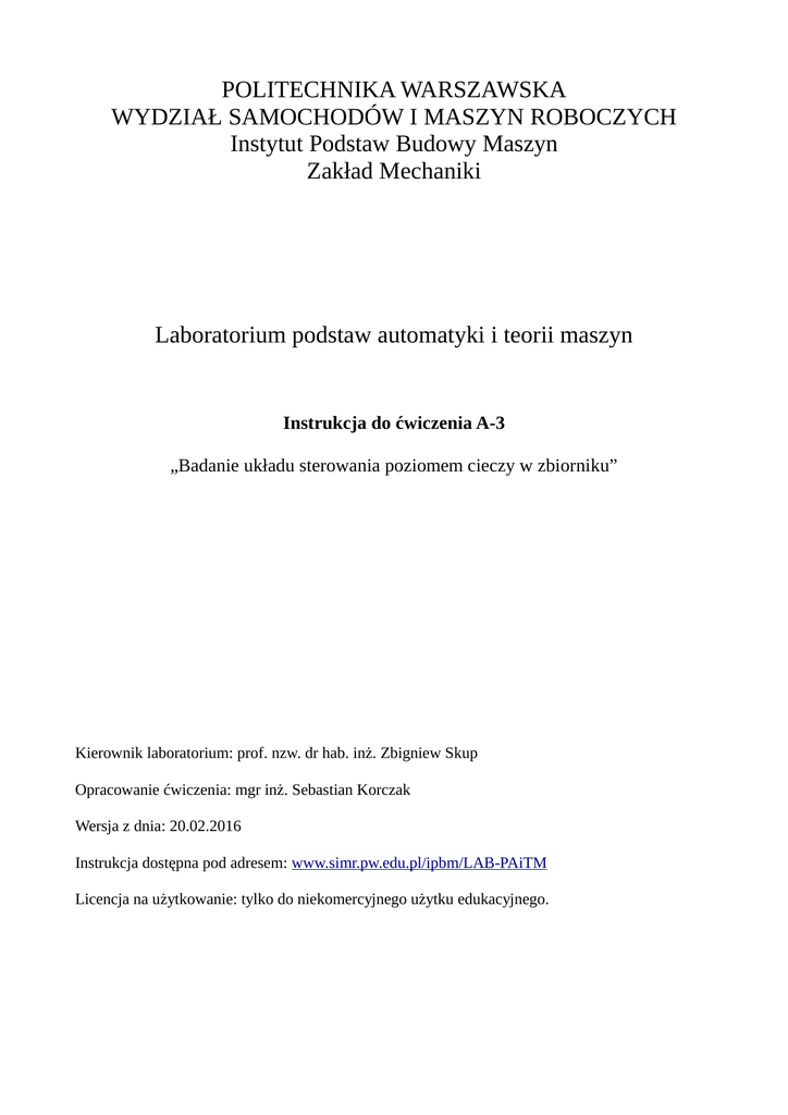 Instrukcja dostępna pod adresem: www.simr.pw.edu.pl/ipbm/LAB-PAiTM