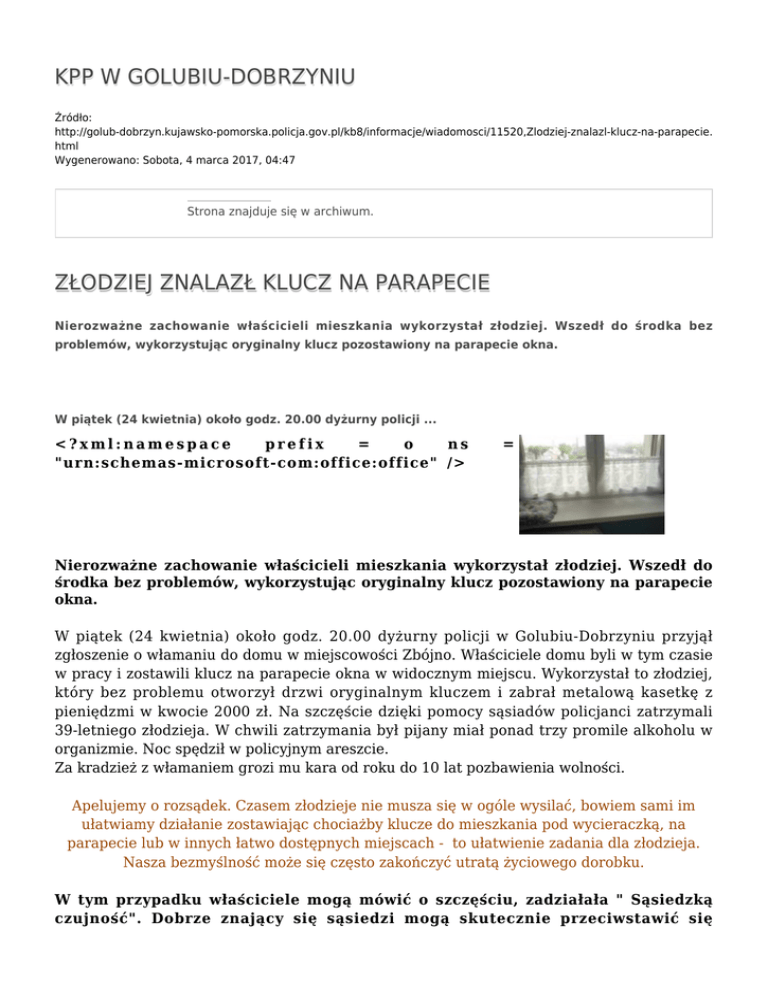 kpp w golubiu-dobrzyniu złodziej znalazł klucz na parapecie