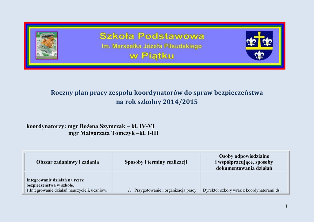 Plan pracy koorynatorów d/s bezpieczeństwa